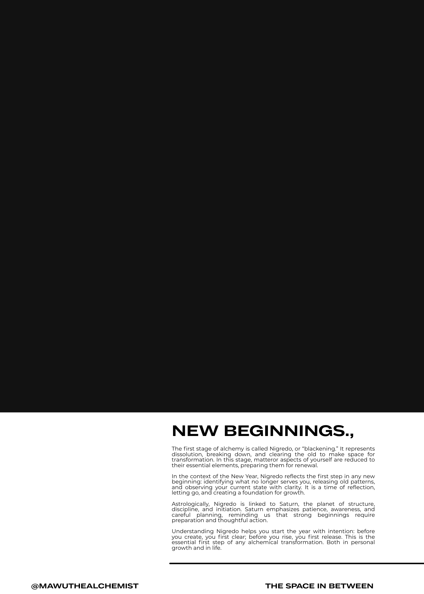 Each issue explores the first stage of alchemy: the blackening. The moment things slow down, dissolve, soften and ask to be seen differently.
